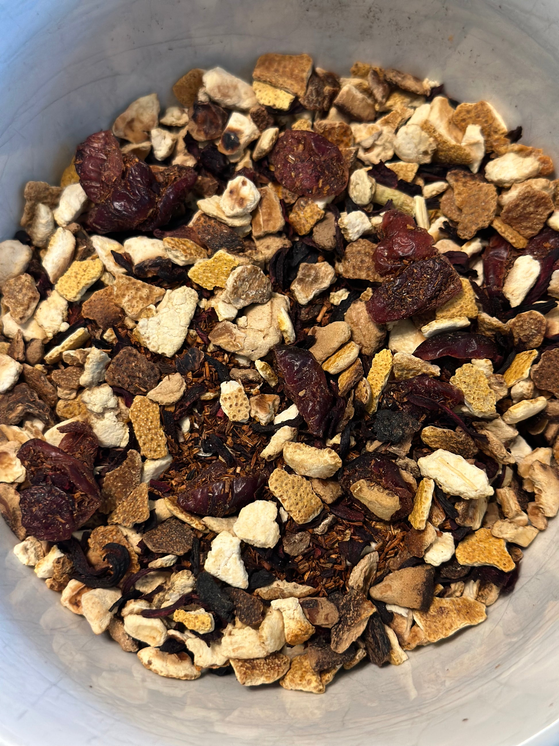 cranberries, orange peel, hibiscus, rooibos